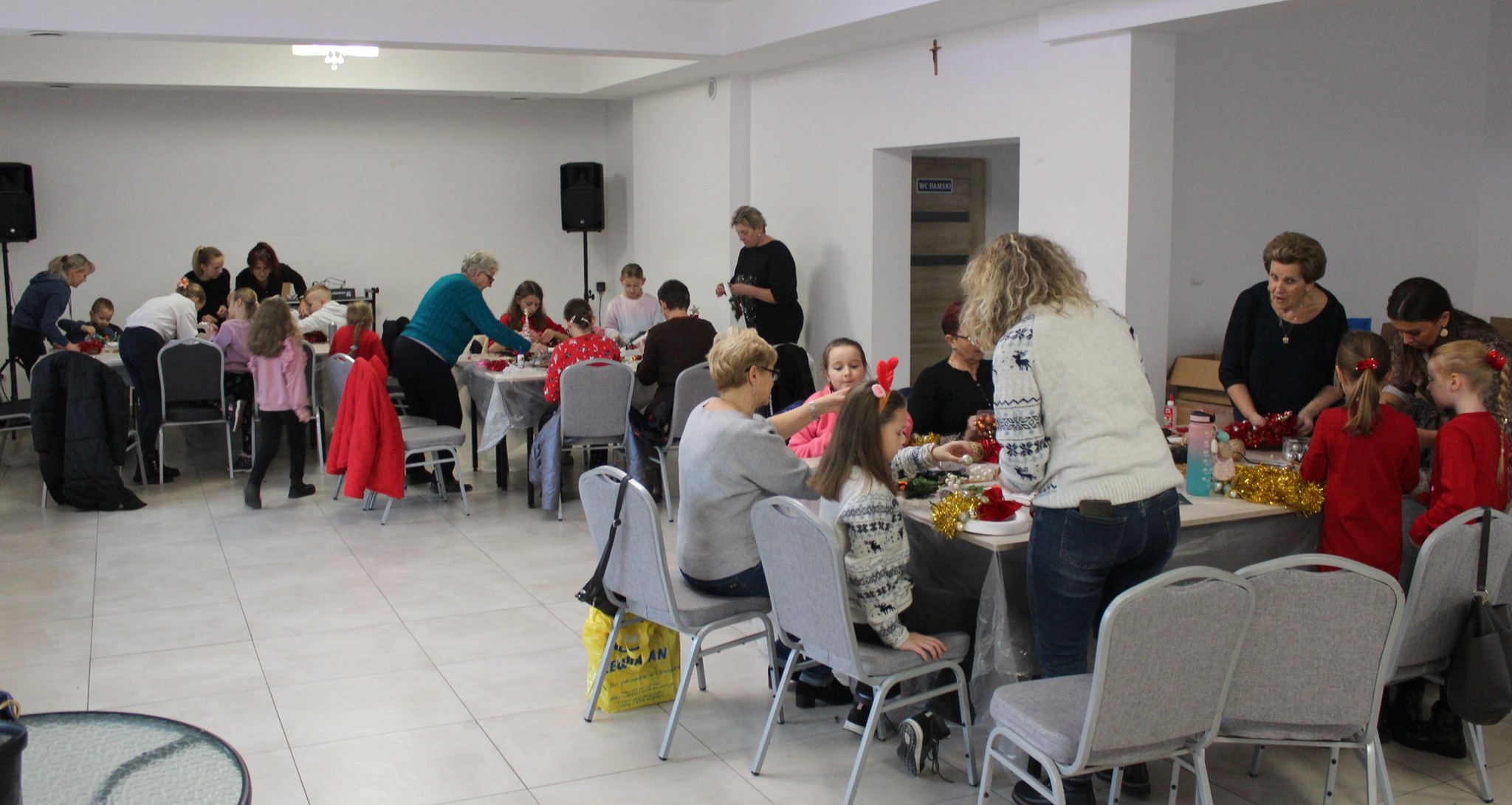 Podczas warsztatów uczestnicy mieli okazję tworzyć własnoręczne stroiki i wieńce świąteczne z naturalnych materiałów.
