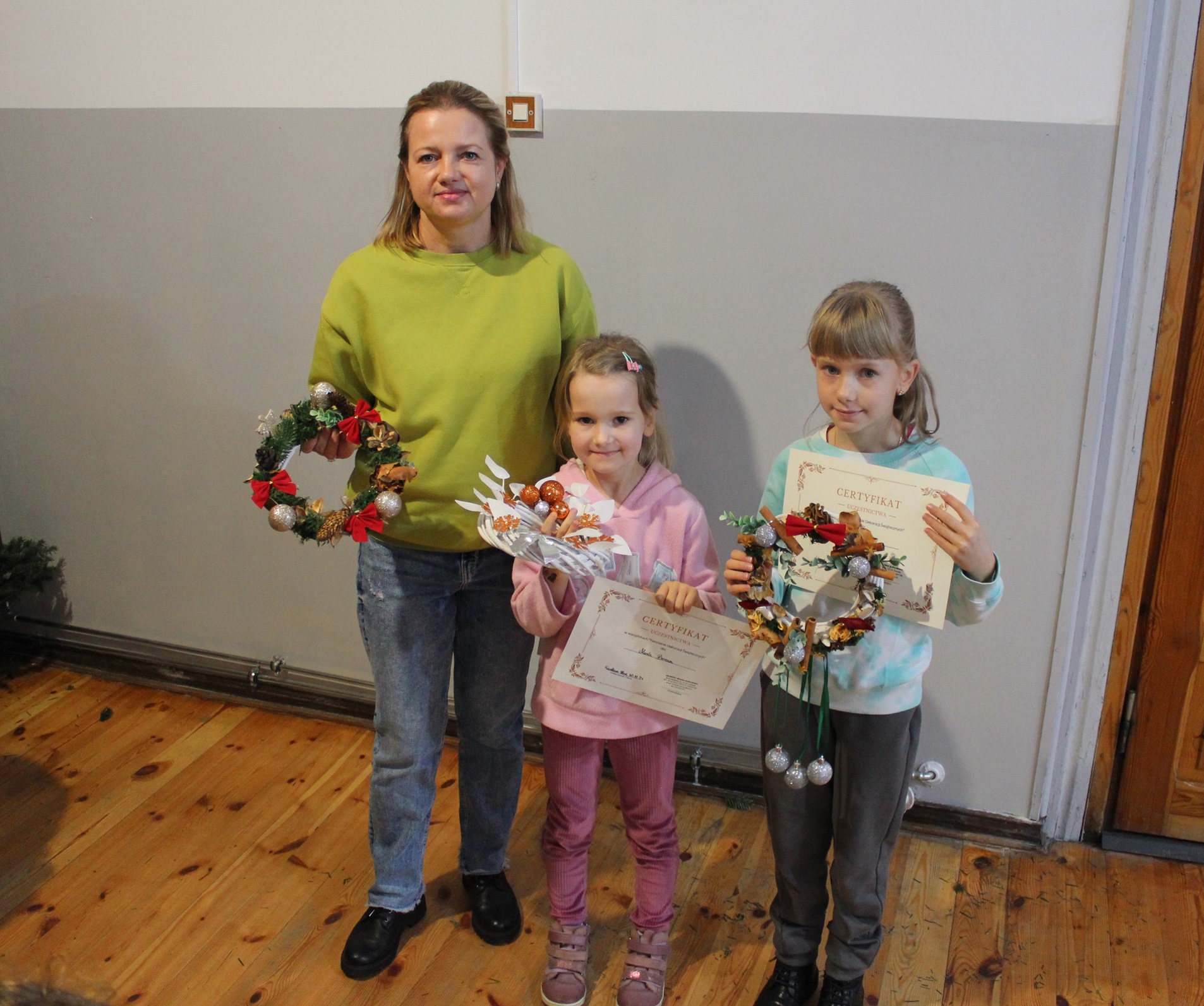 Podczas warsztatów uczestnicy mieli okazję tworzyć własnoręczne stroiki i wieńce świąteczne z naturalnych materiałów.
