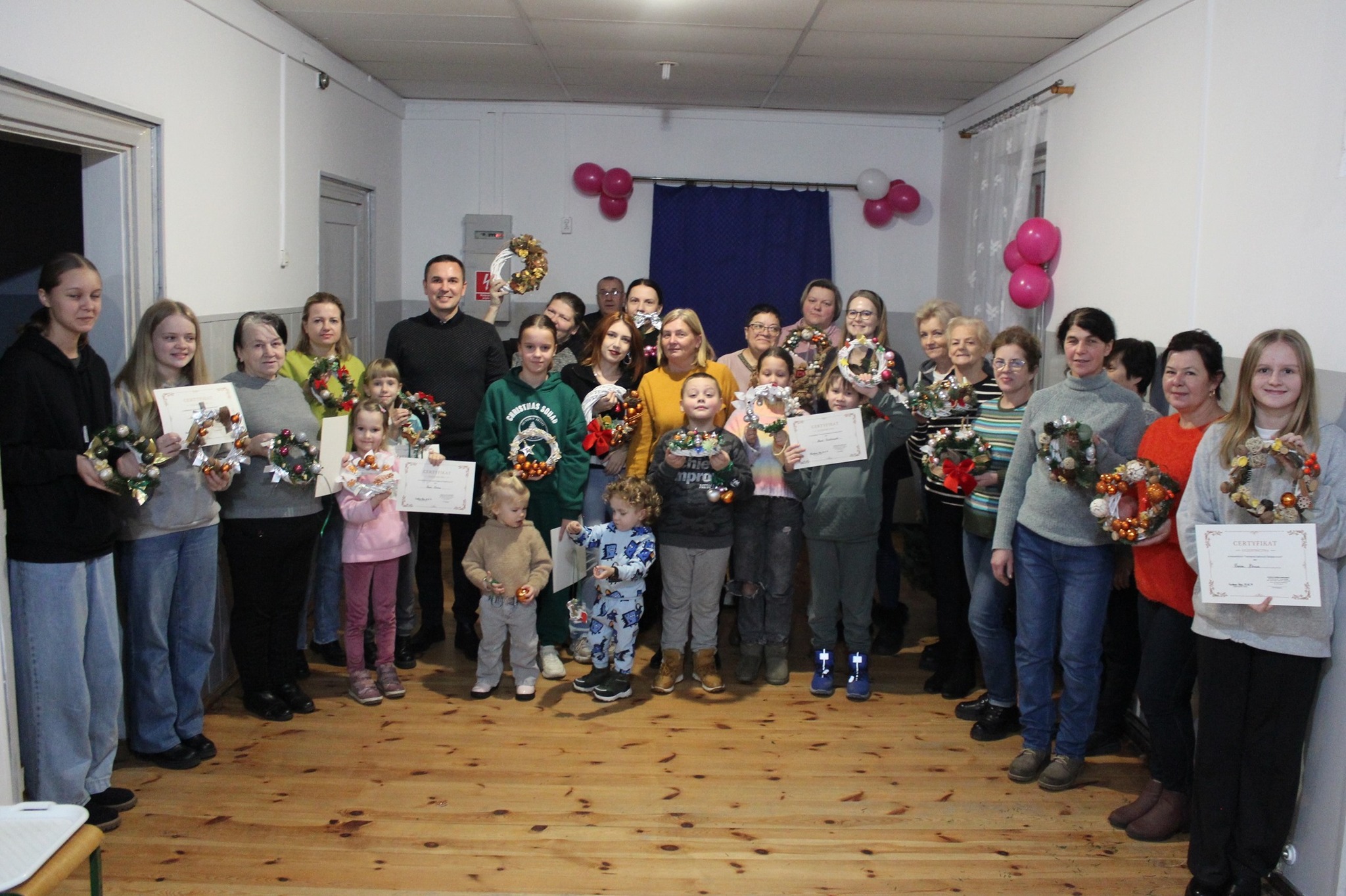 Podczas warsztatów uczestnicy mieli okazję tworzyć własnoręczne stroiki i wieńce świąteczne z naturalnych materiałów.