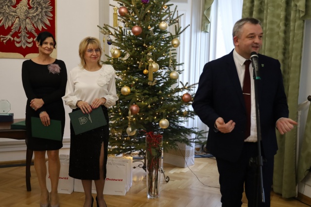 Medale za długoletnie pożycie małżeńskie wręczyli burmistrz Hubert Betlejewski, jego zastępczyni Jolanta Zadroga oraz poseł Mariusz Popielarz.