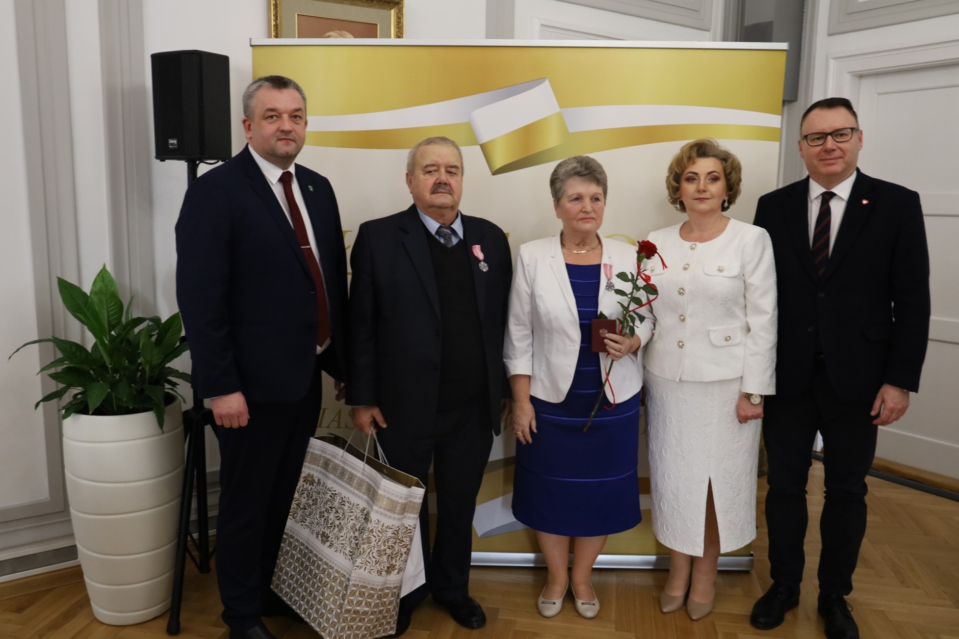 Medale za długoletnie pożycie małżeńskie wręczyli burmistrz Hubert Betlejewski, jego zastępczyni Jolanta Zadroga oraz poseł Mariusz Popielarz.
