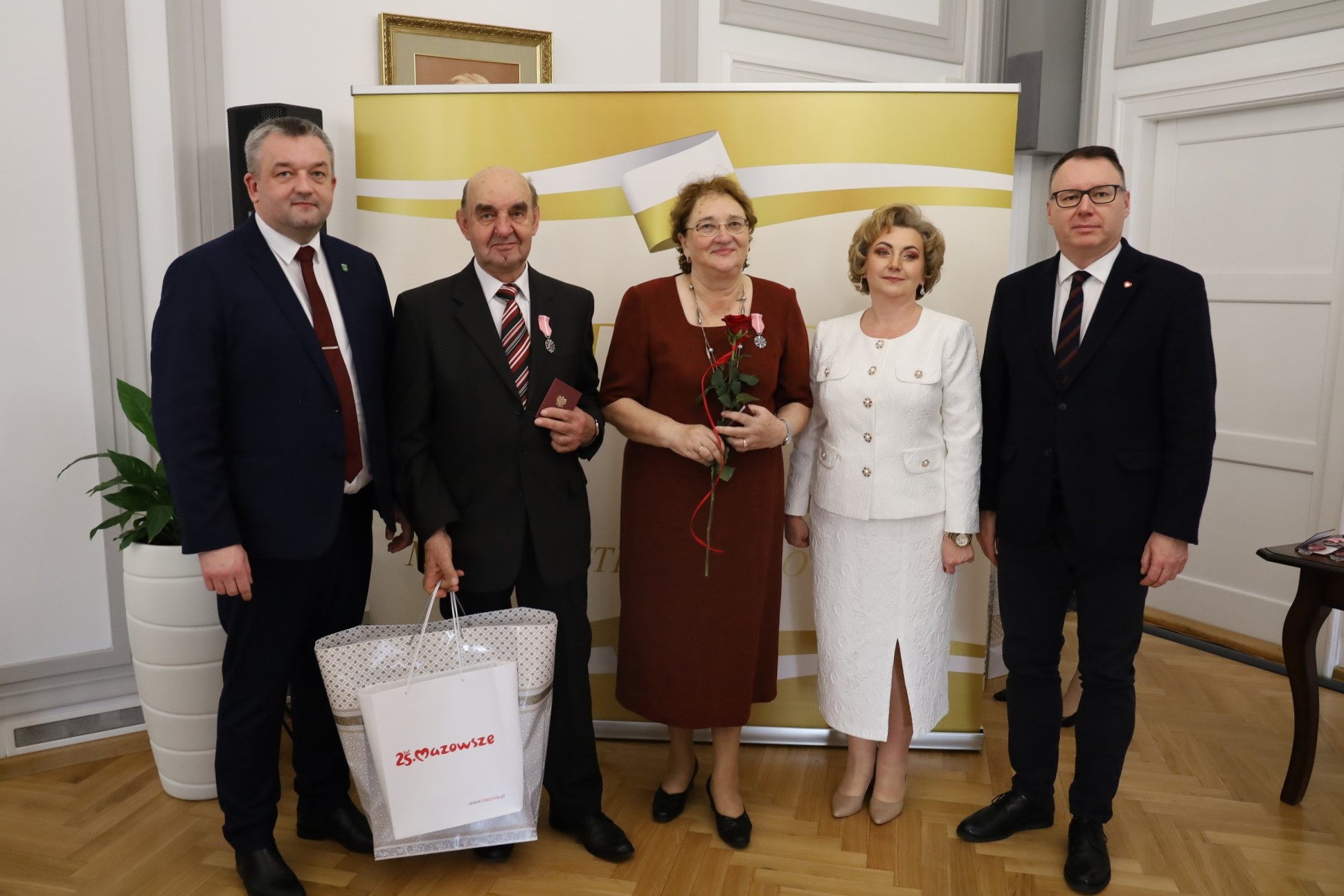 Medale za długoletnie pożycie małżeńskie wręczyli burmistrz Hubert Betlejewski, jego zastępczyni Jolanta Zadroga oraz poseł Mariusz Popielarz.