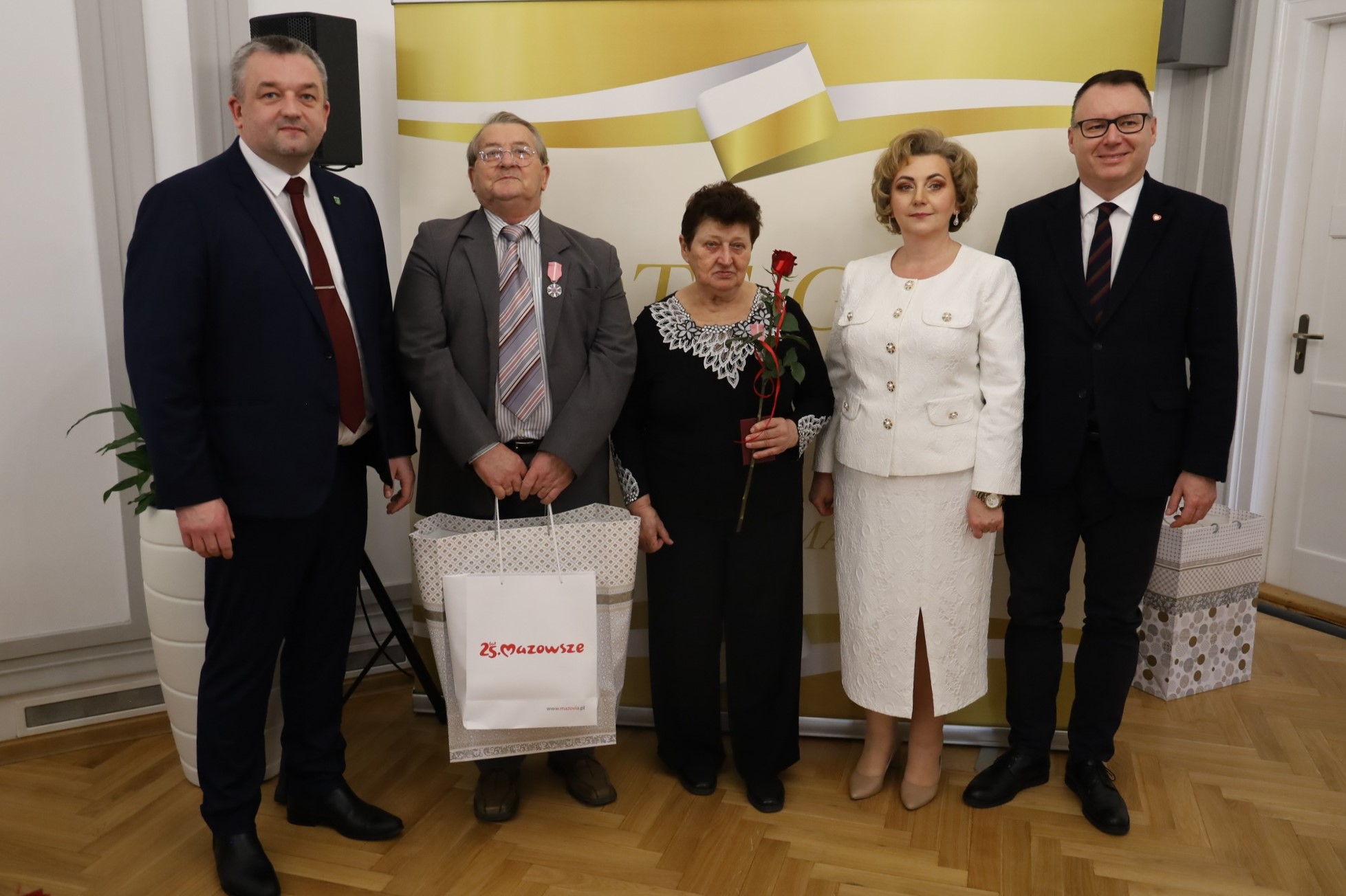 Medale za długoletnie pożycie małżeńskie wręczyli burmistrz Hubert Betlejewski, jego zastępczyni Jolanta Zadroga oraz poseł Mariusz Popielarz.