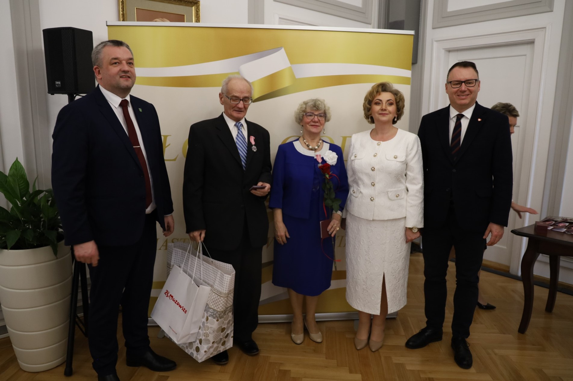 Medale za długoletnie pożycie małżeńskie wręczyli burmistrz Hubert Betlejewski, jego zastępczyni Jolanta Zadroga oraz poseł Mariusz Popielarz.