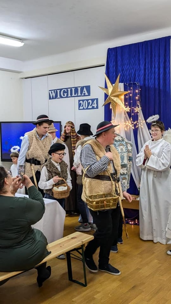 Jasełka w wykonaniu uczniów SOSW i wspólne kolędowanie wychowanków, ich rodziców oraz przyjaciół placówki.