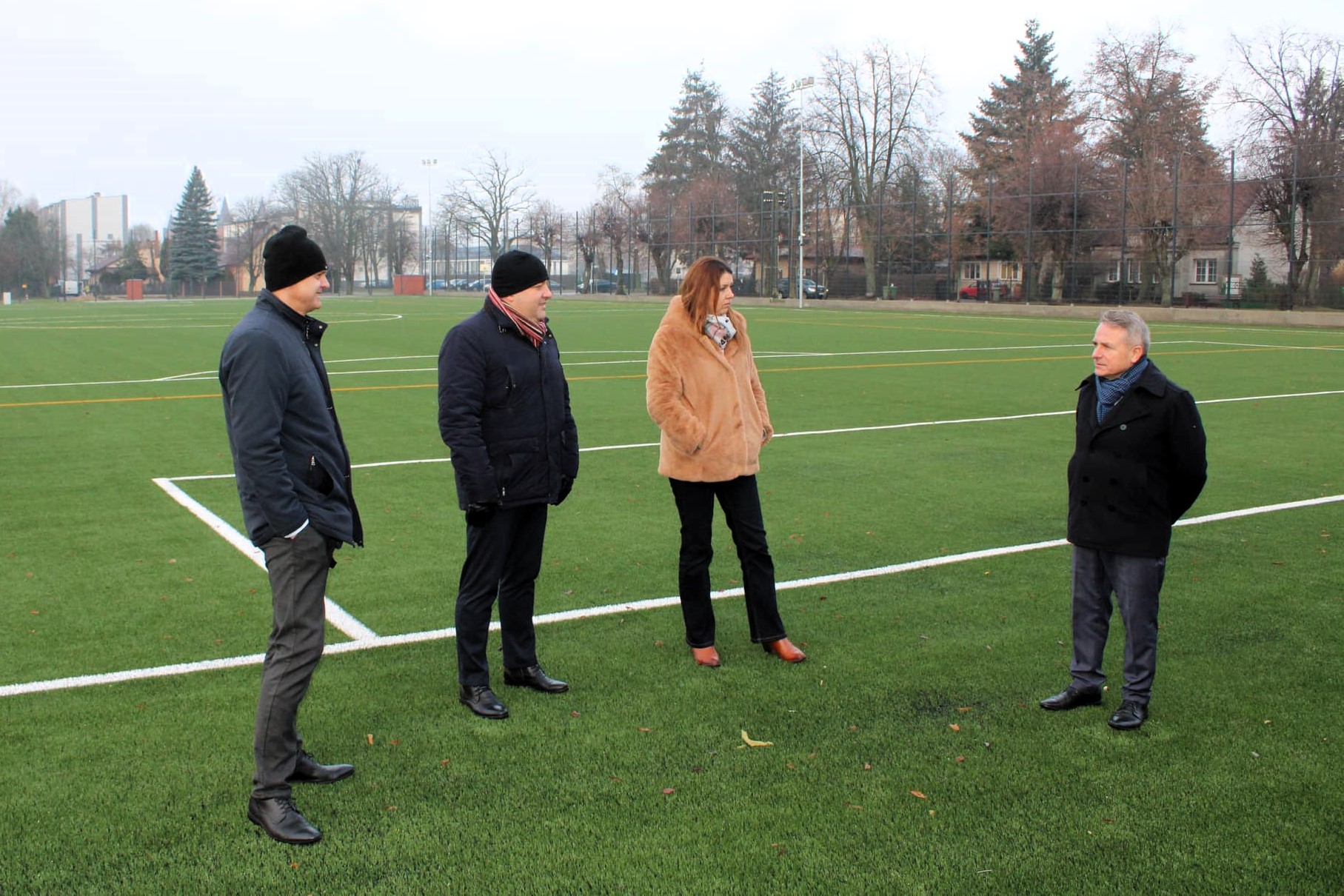 Wizytacja starosty Jerzego Bauera i wicestarosty Bartłomieja Pieńkowskiego przy inwestycji remontu zaplecza sportowego "Rubinka".
