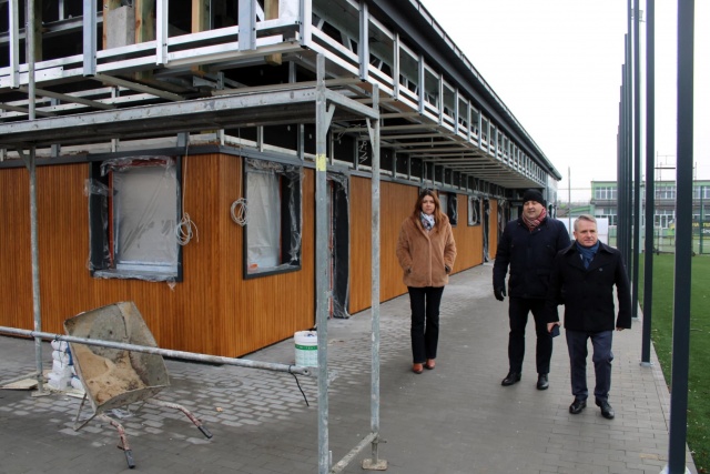Wizytacja starosty Jerzego Bauera i wicestarosty Bartłomieja Pieńkowskiego przy inwestycji remontu zaplecza sportowego "Rubinka".