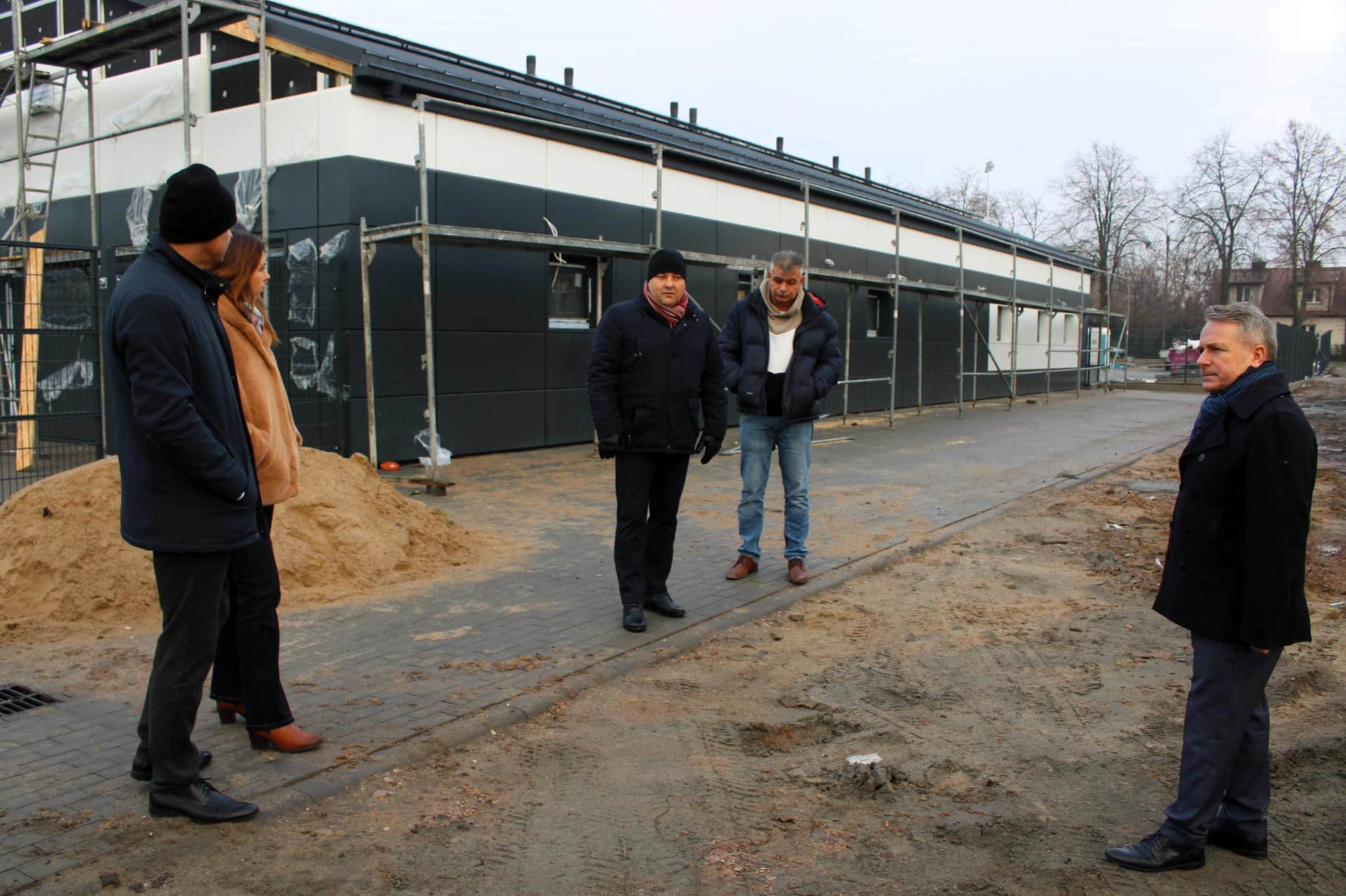 Wizytacja starosty Jerzego Bauera i wicestarosty Bartłomieja Pieńkowskiego przy inwestycji remontu zaplecza sportowego "Rubinka".