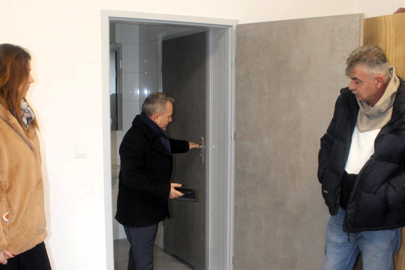 Wizytacja starosty Jerzego Bauera i wicestarosty Bartłomieja Pieńkowskiego przy inwestycji remontu zaplecza sportowego "Rubinka".