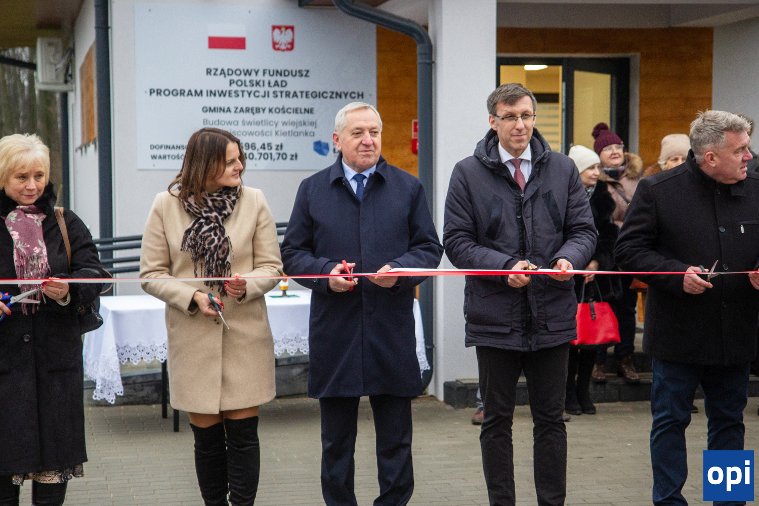W obecności radnych gminy i powiatu, samorządowców, posłów oraz mieszkańców otwarto drogę gminną do Pułazia, świetlicę w Chmielewie i nowy kompleks sportowy przy szkole w Zarębach Kościelnych.