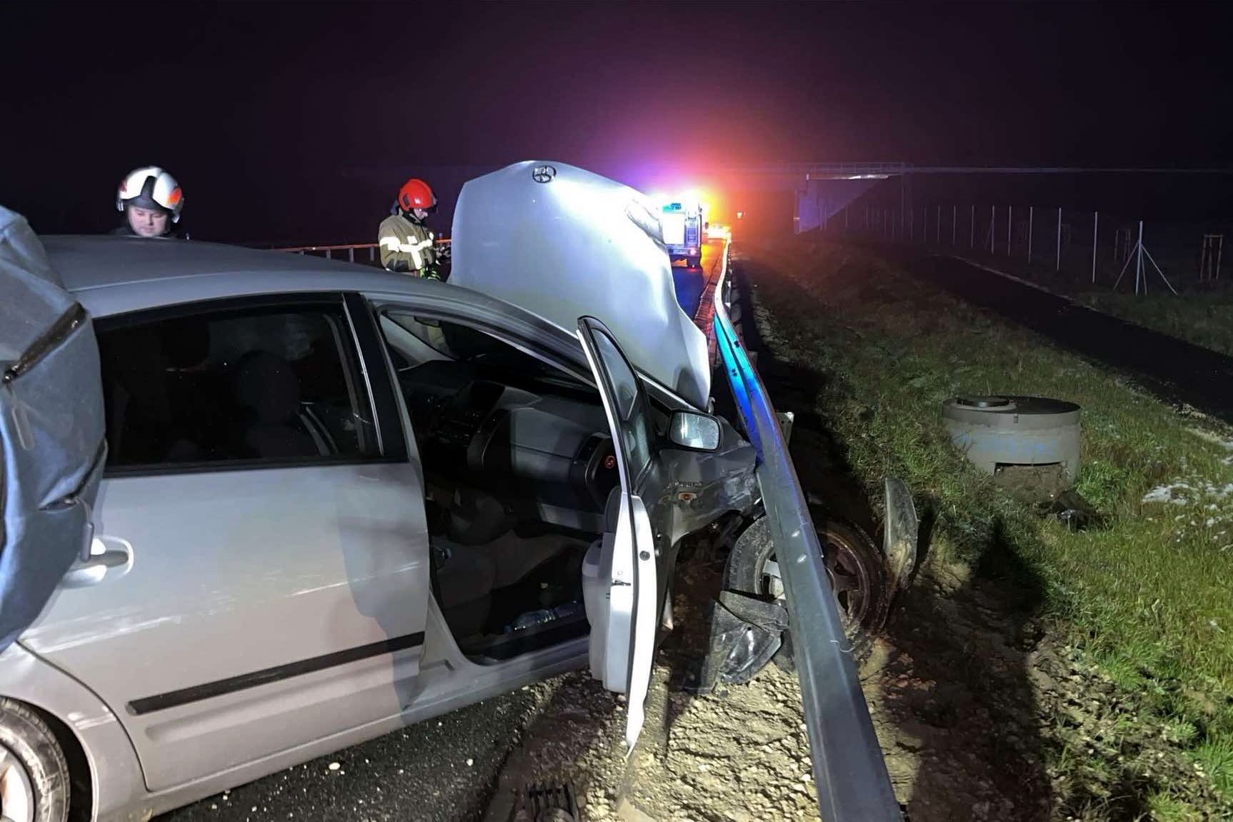 W zdarzeniu uczestniczyły dwa pojazdy osobowe, marek Mitsubishi i Toyota.