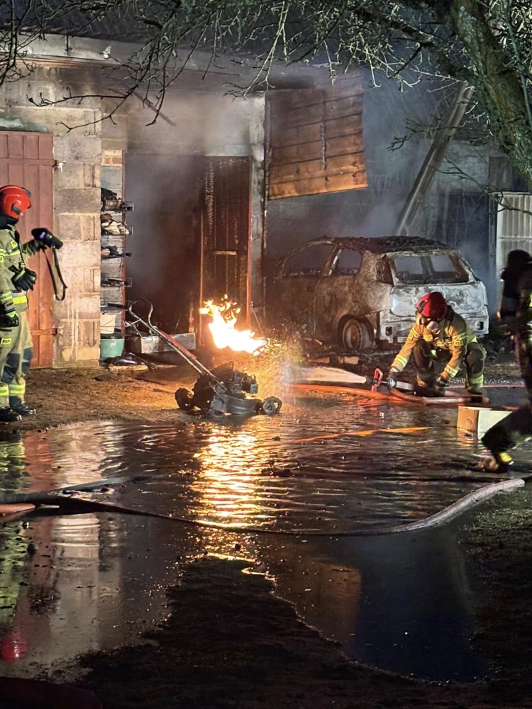 Pożar drewnianego garażu z samochodem wewnątrz w Brudkach Starych (25.01.2025) - Zdjęcie 26/35