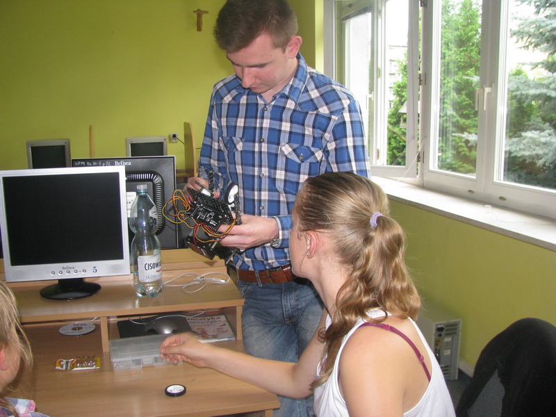 10-osobowa grupa uczniów i uczennic ze Szkoły Podstawowej nr 2 im. Fryderyka Chopina w Małkini Górnej wzięła udział w wakacyjnych zajęciach realizowanych w ramach projektu "Mój pierwszy robot".