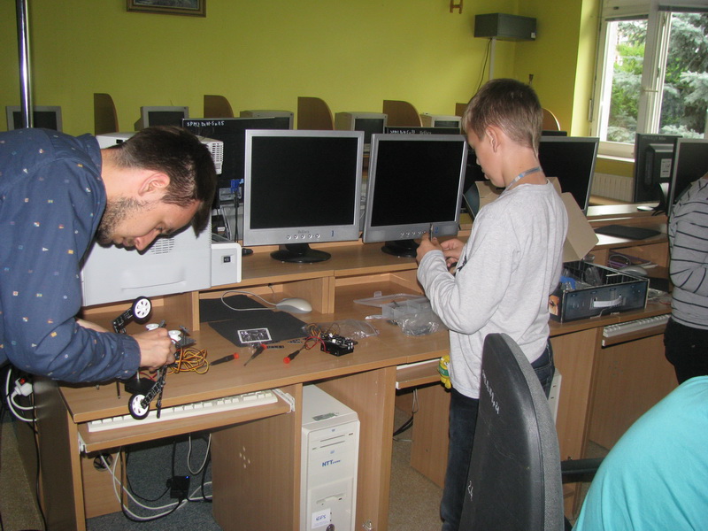 10-osobowa grupa uczniów i uczennic ze Szkoły Podstawowej nr 2 im. Fryderyka Chopina w Małkini Górnej wzięła udział w wakacyjnych zajęciach realizowanych w ramach projektu "Mój pierwszy robot".