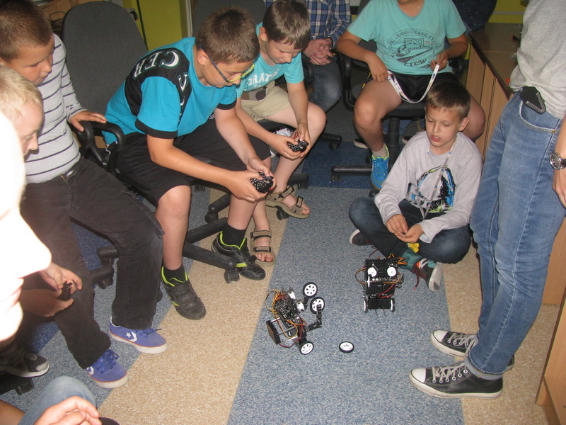 10-osobowa grupa uczniów i uczennic ze Szkoły Podstawowej nr 2 im. Fryderyka Chopina w Małkini Górnej wzięła udział w wakacyjnych zajęciach realizowanych w ramach projektu "Mój pierwszy robot".