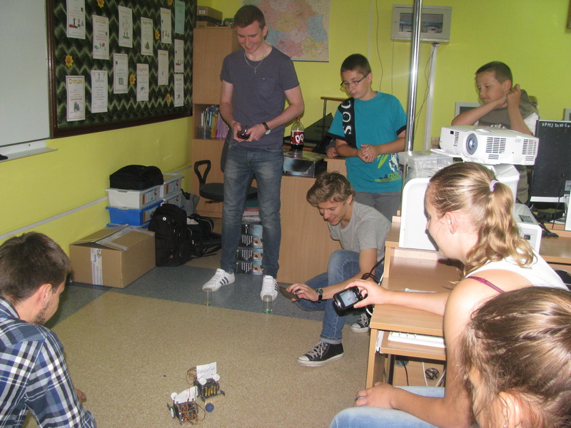 10-osobowa grupa uczniów i uczennic ze Szkoły Podstawowej nr 2 im. Fryderyka Chopina w Małkini Górnej wzięła udział w wakacyjnych zajęciach realizowanych w ramach projektu "Mój pierwszy robot".