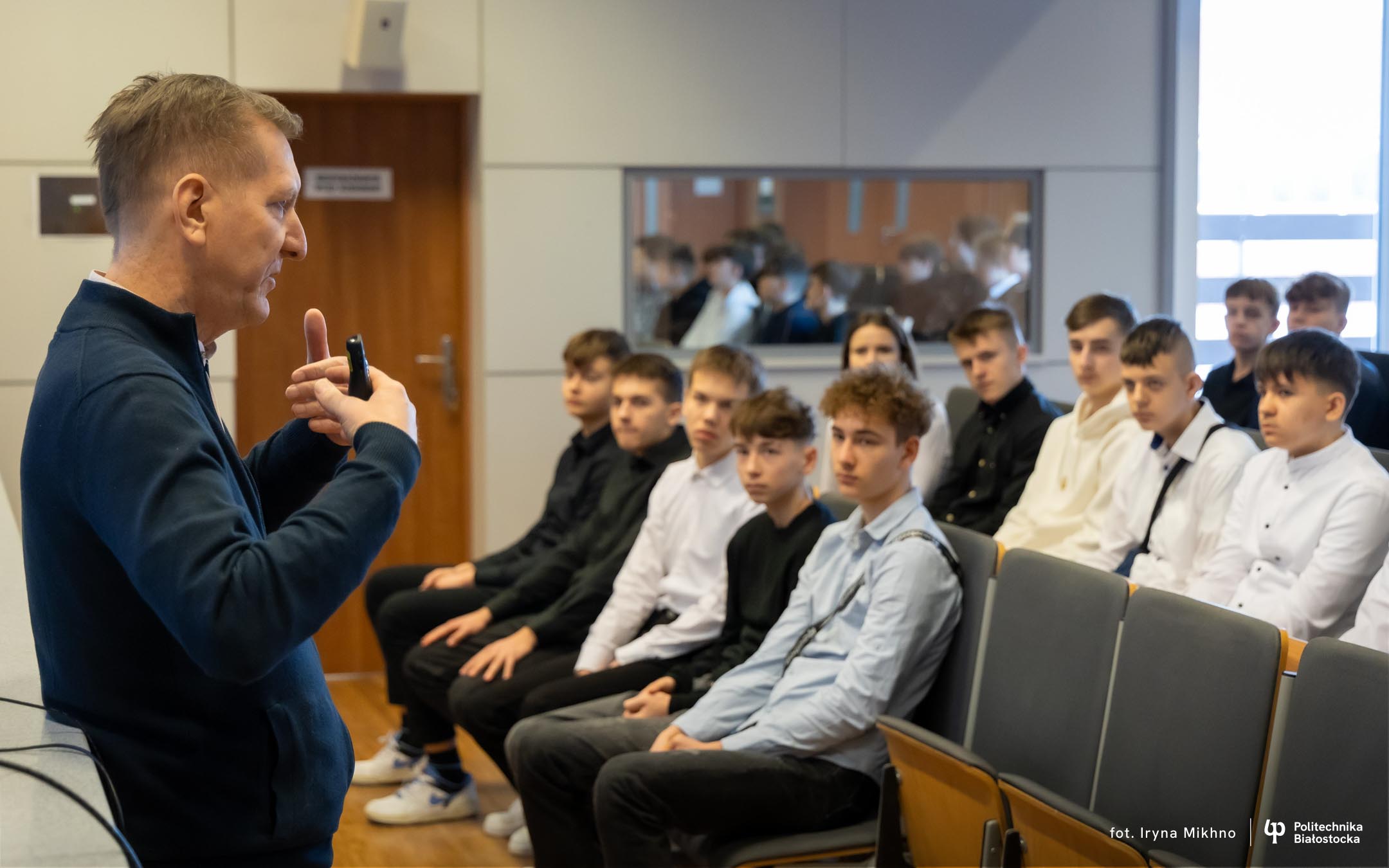 Czterdziestu uczniów z klas pod patronatem Politechniki Białostockiej z Zespołu Szkół nr 2 w Ostrowi Mazowieckiej odwiedziło uczelnię.
