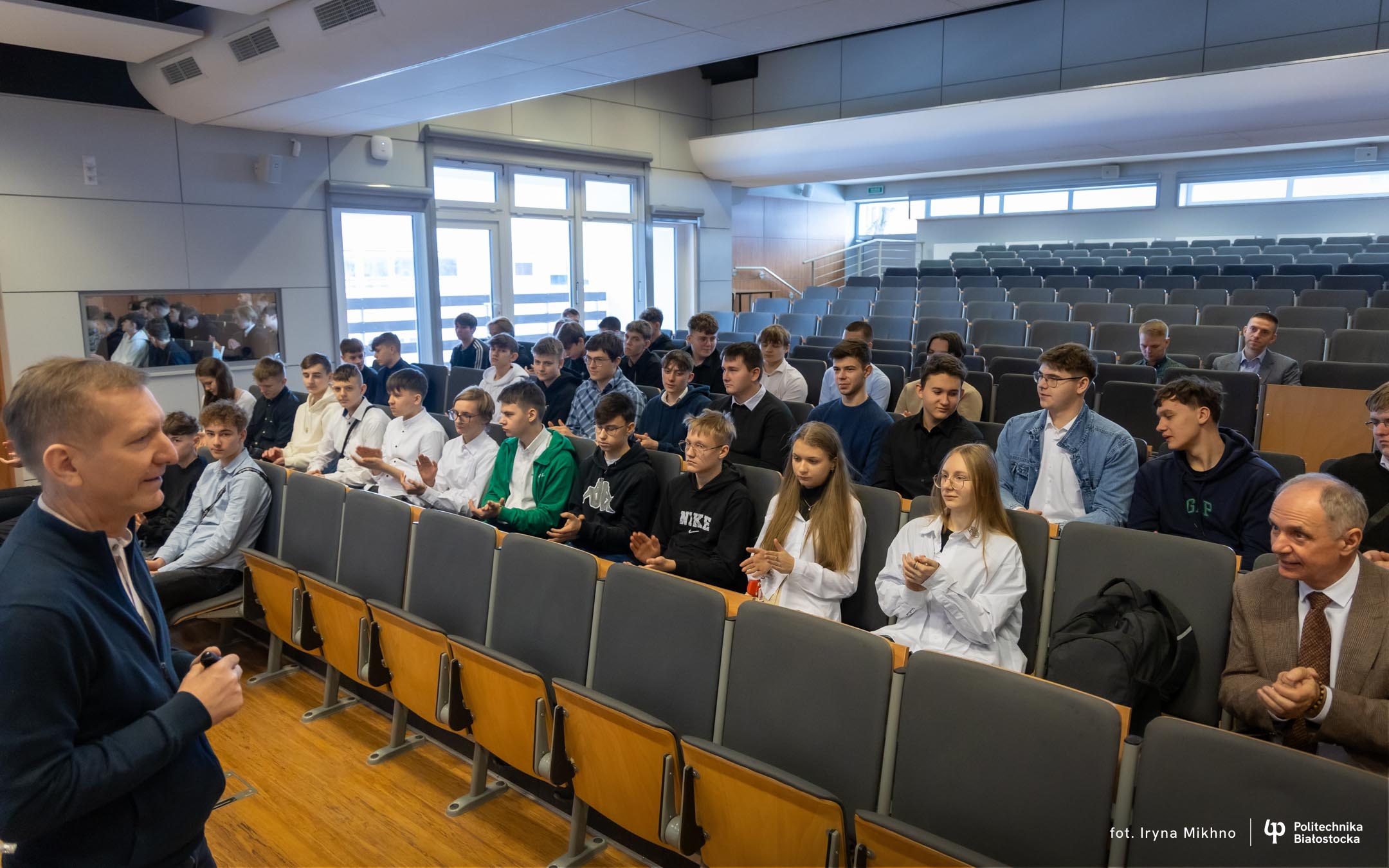 Czterdziestu uczniów z klas pod patronatem Politechniki Białostockiej z Zespołu Szkół nr 2 w Ostrowi Mazowieckiej odwiedziło uczelnię.