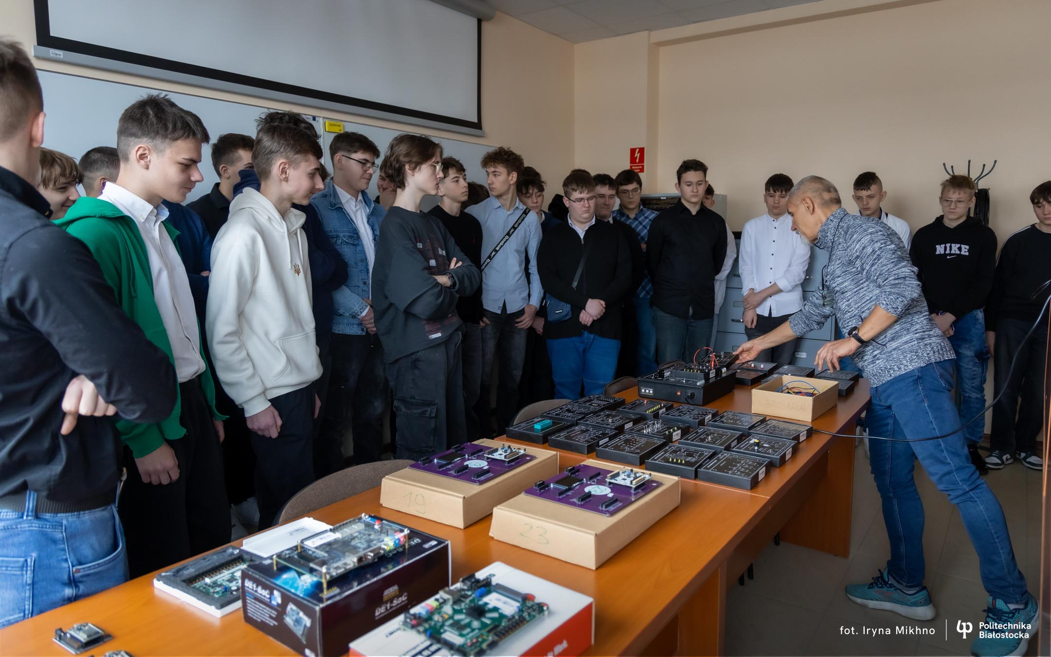Czterdziestu uczniów z klas pod patronatem Politechniki Białostockiej z Zespołu Szkół nr 2 w Ostrowi Mazowieckiej odwiedziło uczelnię.