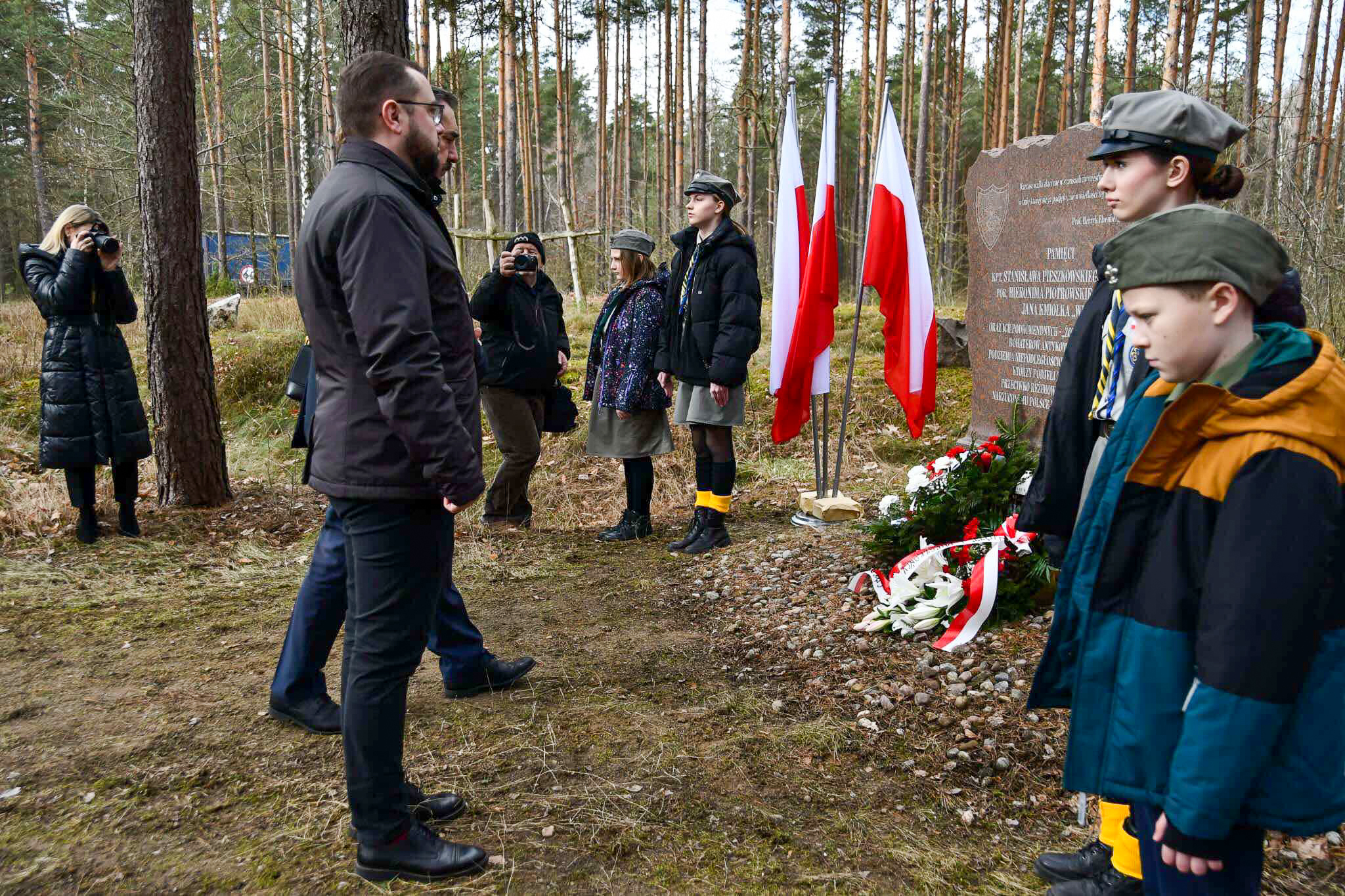 Uroczystości upamiętniające żołnierzy wyklętych - bohaterów, którzy poświęcili życie w walce o wolną i suwerenną Polskę. Delegacje z gminy Brok oraz gminy Małkinia Górna złożyły wieńce pod pomnikiem poświęconym pamięci "Żołnierzom Wyklętym", który znajduje się w lesie na trasie Brok - Małkinia Górna.