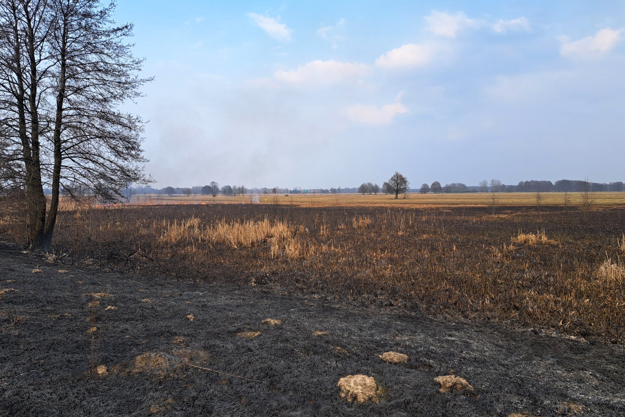 Ogień objął blisko 2 ha terenu. Płonęły krzewy, młodniki, trawy oraz zarośla.