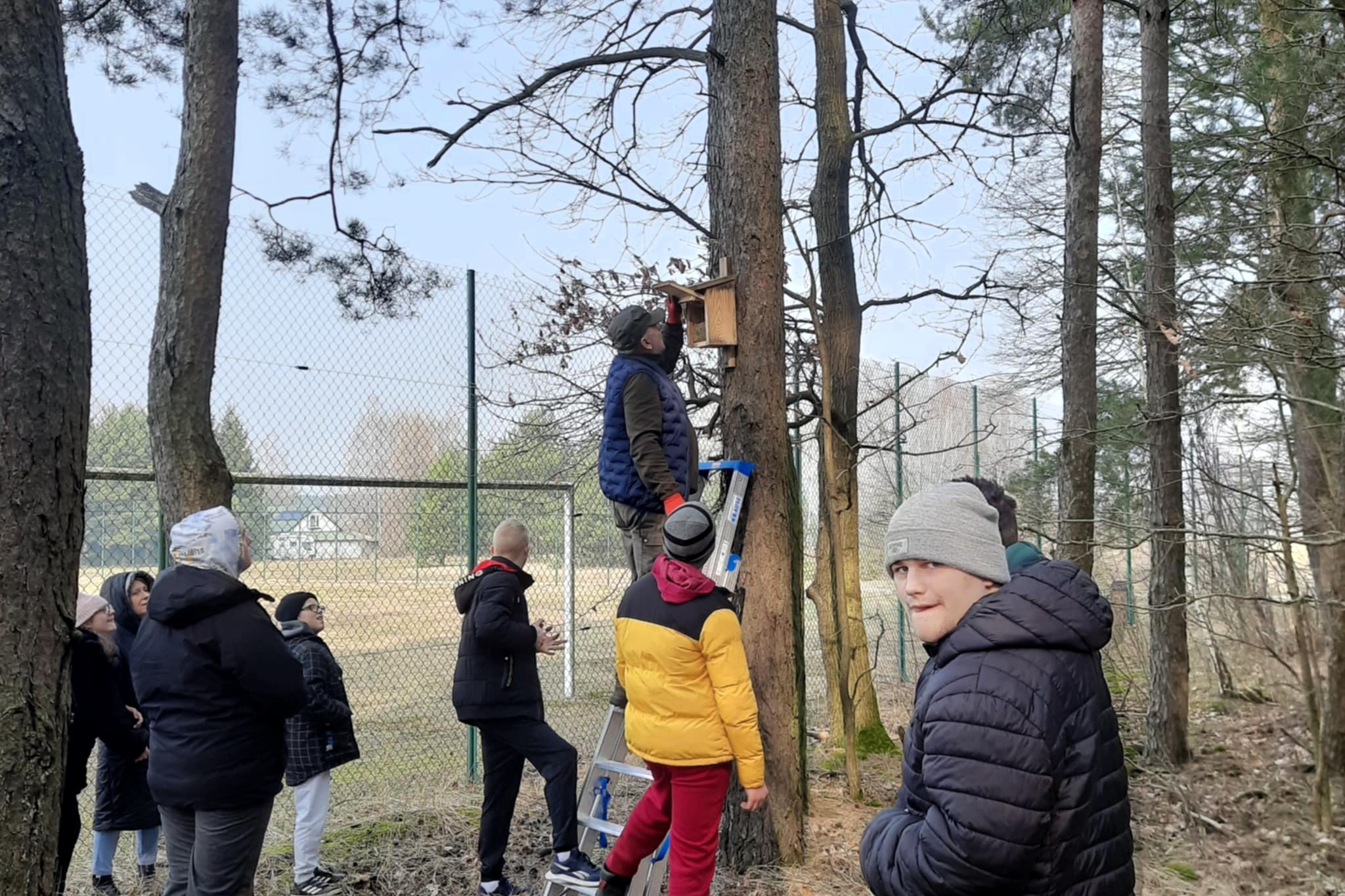 Młodzież wzięła udział w wyjątkowych zajęciach - sprzątała budki lęgowe.