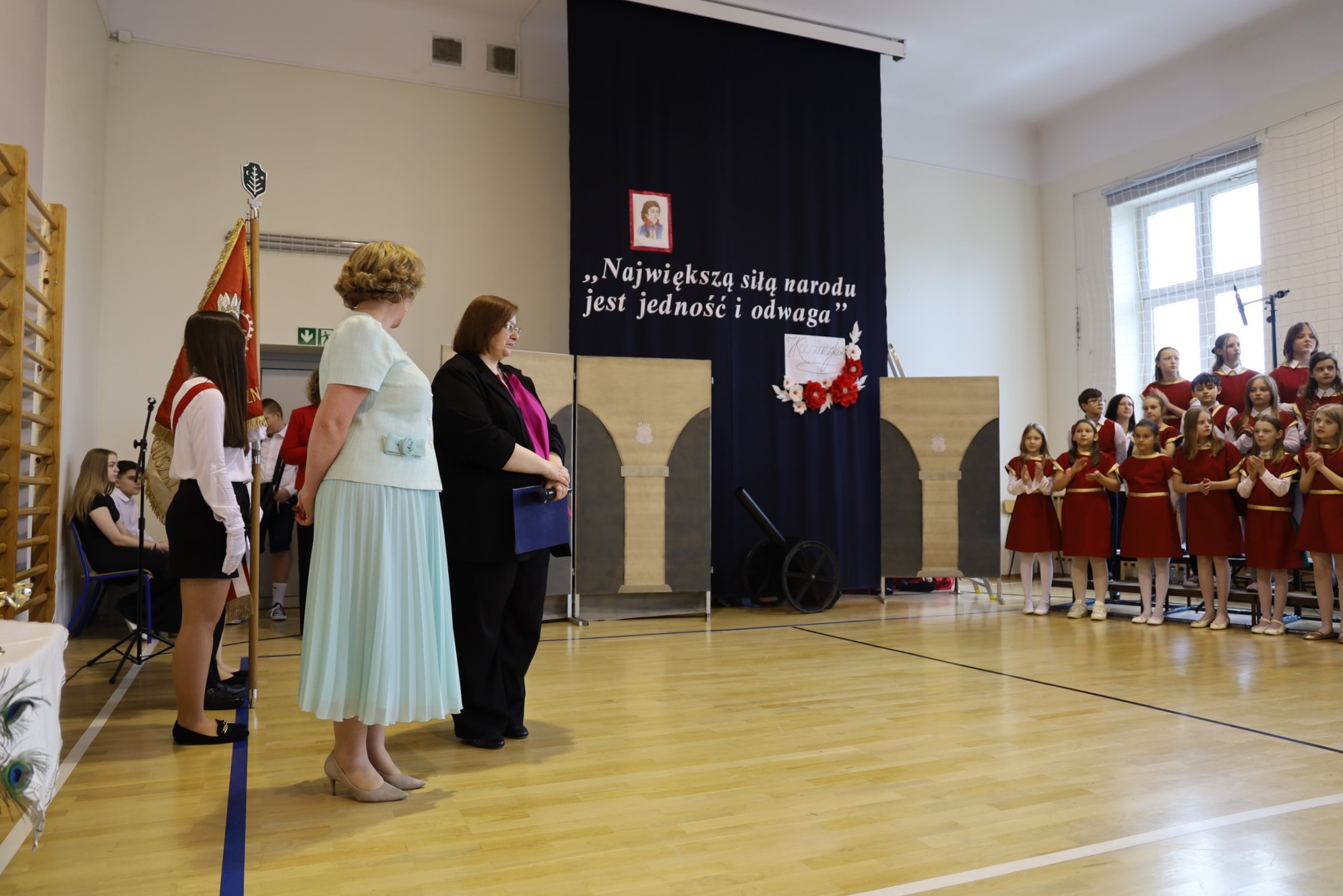 W trakcie uroczystości wręczono nagrody laureatom konkursów plastycznych i wiedzy o patronie dla uczniów.