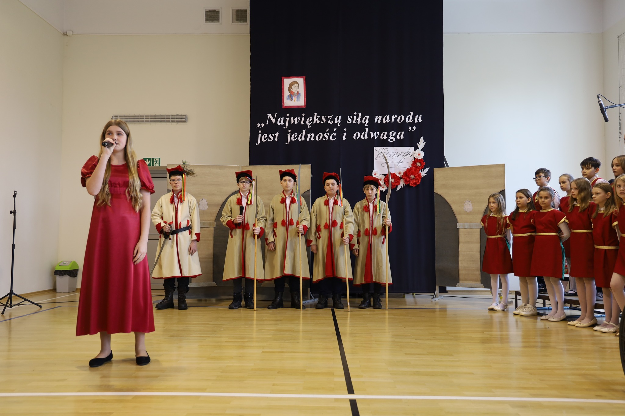 W trakcie uroczystości wręczono nagrody laureatom konkursów plastycznych i wiedzy o patronie dla uczniów.