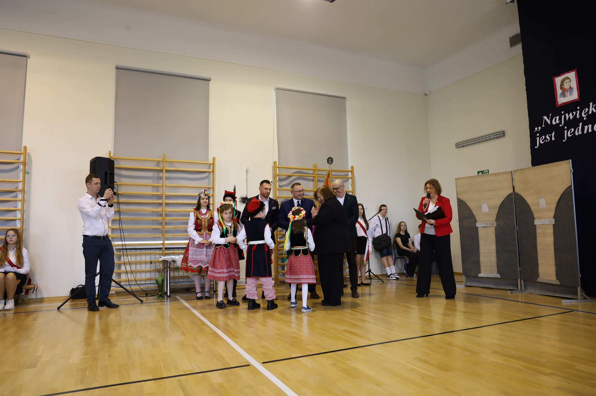 W trakcie uroczystości wręczono nagrody laureatom konkursów plastycznych i wiedzy o patronie dla uczniów.