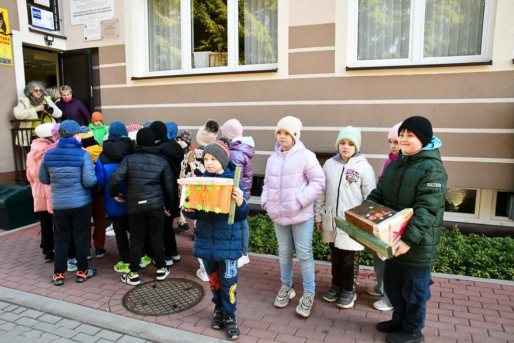 W ramach działań edukacyjnych uczniowie miejscowej szkoły przygotowali budki lęgowe, które później zostały zamontowane na terenie miasta, dając ptakom szansę na założenie gniazd w miejskim środowisku.