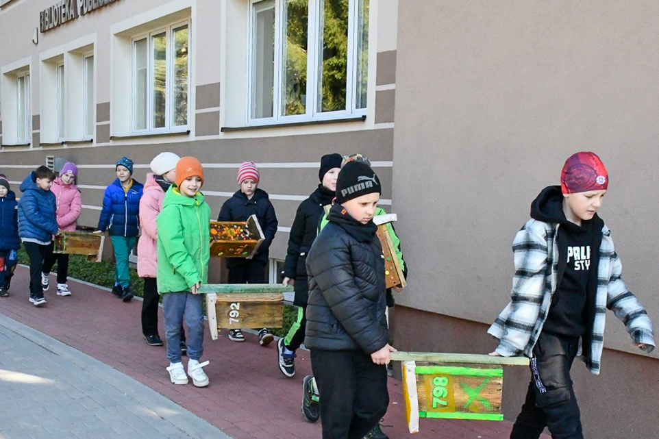 W ramach działań edukacyjnych uczniowie miejscowej szkoły przygotowali budki lęgowe, które później zostały zamontowane na terenie miasta, dając ptakom szansę na założenie gniazd w miejskim środowisku.