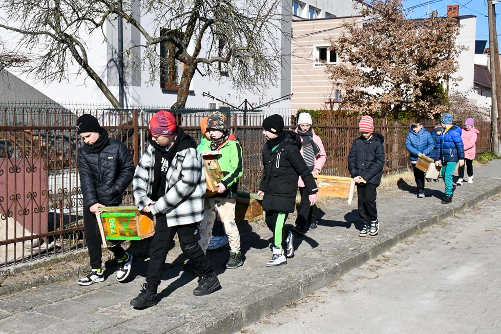 W ramach działań edukacyjnych uczniowie miejscowej szkoły przygotowali budki lęgowe, które później zostały zamontowane na terenie miasta, dając ptakom szansę na założenie gniazd w miejskim środowisku.