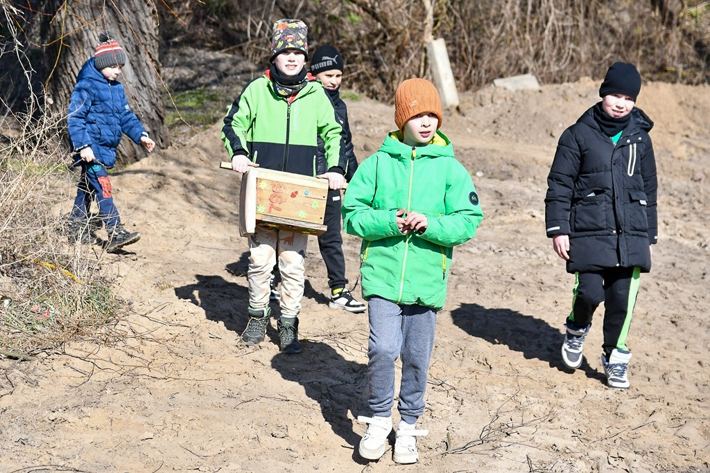 W ramach działań edukacyjnych uczniowie miejscowej szkoły przygotowali budki lęgowe, które później zostały zamontowane na terenie miasta, dając ptakom szansę na założenie gniazd w miejskim środowisku.