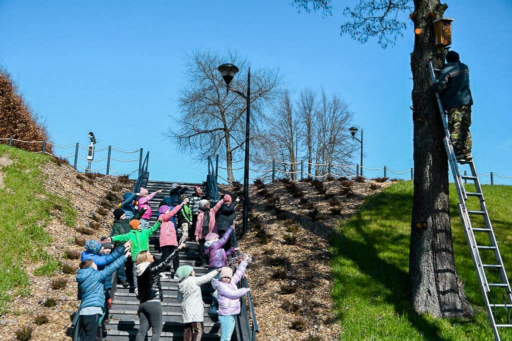 W ramach działań edukacyjnych uczniowie miejscowej szkoły przygotowali budki lęgowe, które później zostały zamontowane na terenie miasta, dając ptakom szansę na założenie gniazd w miejskim środowisku.