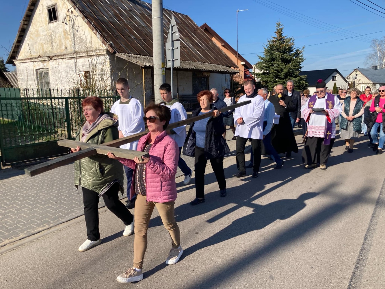 Nabożeństwo pasyjne odprawione zostało w intencji Ojczyzny, gromadząc licznych parafian, którzy z głębokim skupieniem przeżywali kolejne stacje Męki Pańskiej. Procesja przeszła głównymi ulicami miejscowości