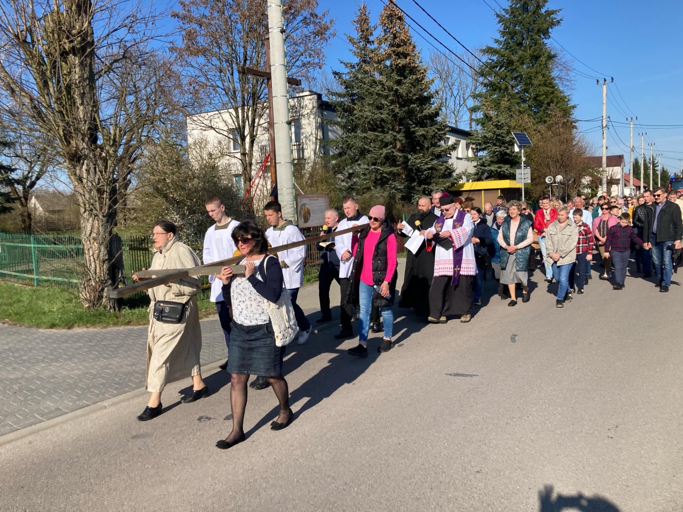 Nabożeństwo pasyjne odprawione zostało w intencji Ojczyzny, gromadząc licznych parafian, którzy z głębokim skupieniem przeżywali kolejne stacje Męki Pańskiej. Procesja przeszła głównymi ulicami miejscowości