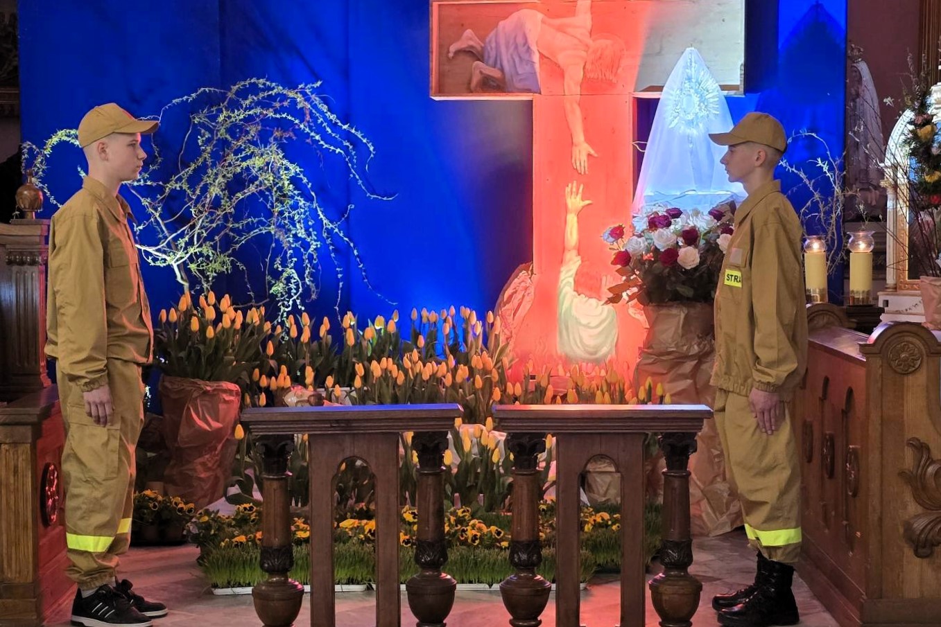 Młodzieżowa Drużyna Pożarniczna, wspólnie z kolegami z Broku pełnili wartę honorową przy Grobie Pańskim w kościele św. Andrzeja Apostoła.