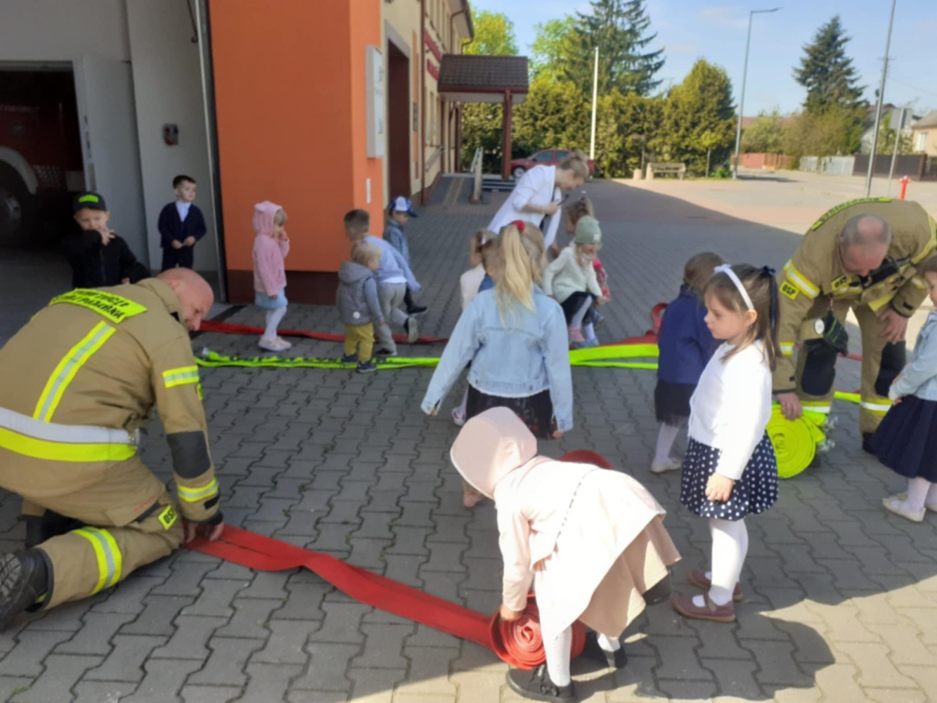 Dzieci z entuzjazmem uczestniczyli w spotkaniu, które pozwoliło im z bliska poznać codzienną pracę strażaków.