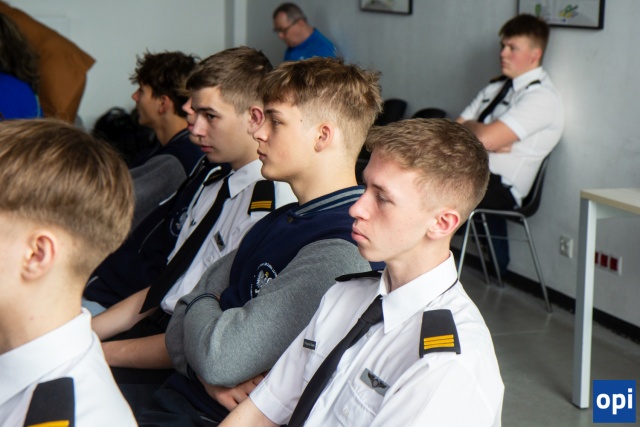 Maciej "Slab" Krakowian, pilot samolotu wielozadaniowego F-16, spotkał się w Starej Elektrowni z uczniami CSL Technikum Lotniczego.