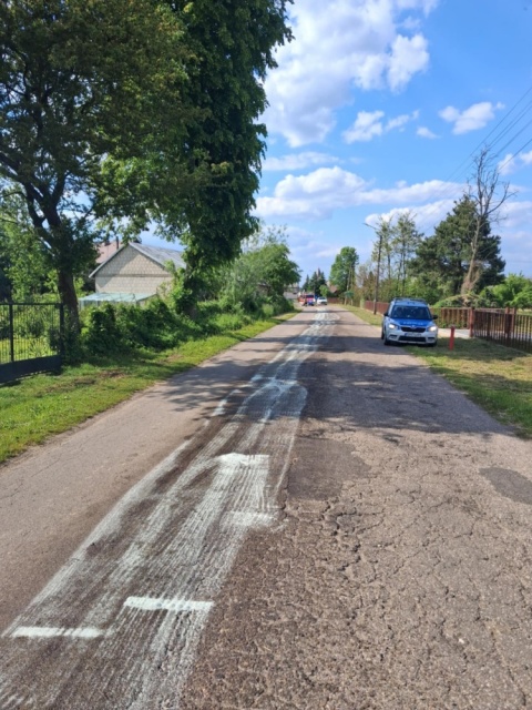 Wyciek paliwa z uszkodzonego zbiornika pojazdu ciężarowego. Paliwo zostało zneutralizowane przy pomocy specjalistycznego sorbentu.