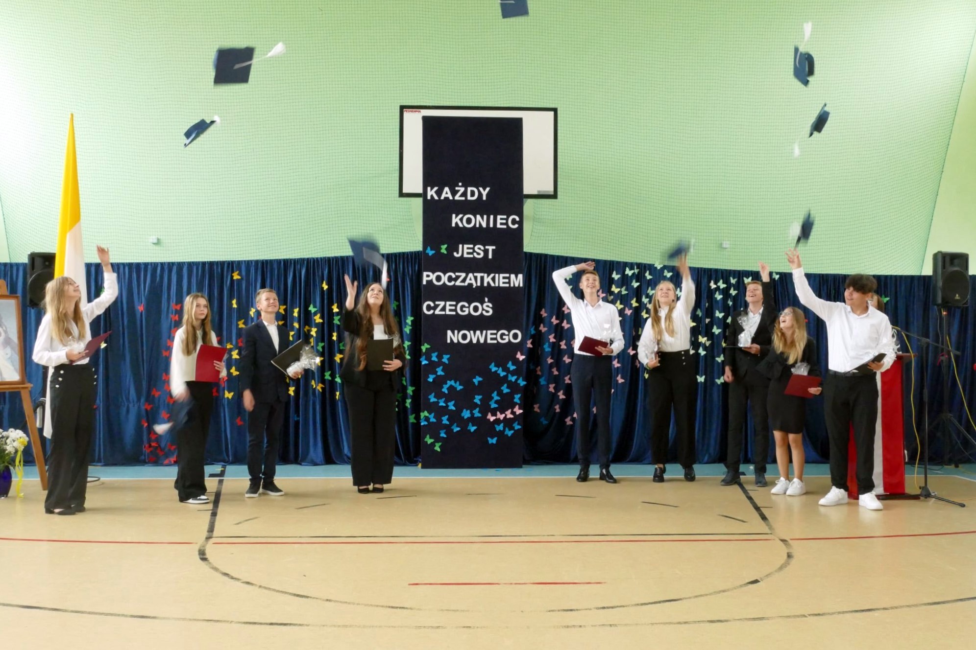 Słowa wdzięczności, statuetki dla najlepszych i program artystyczny. Społeczność Szkoły Podstawowej im. Ojca Świętego Jana Pawła II w Bogutach-Piankach zamknęła rok szkolny 2024/2025.