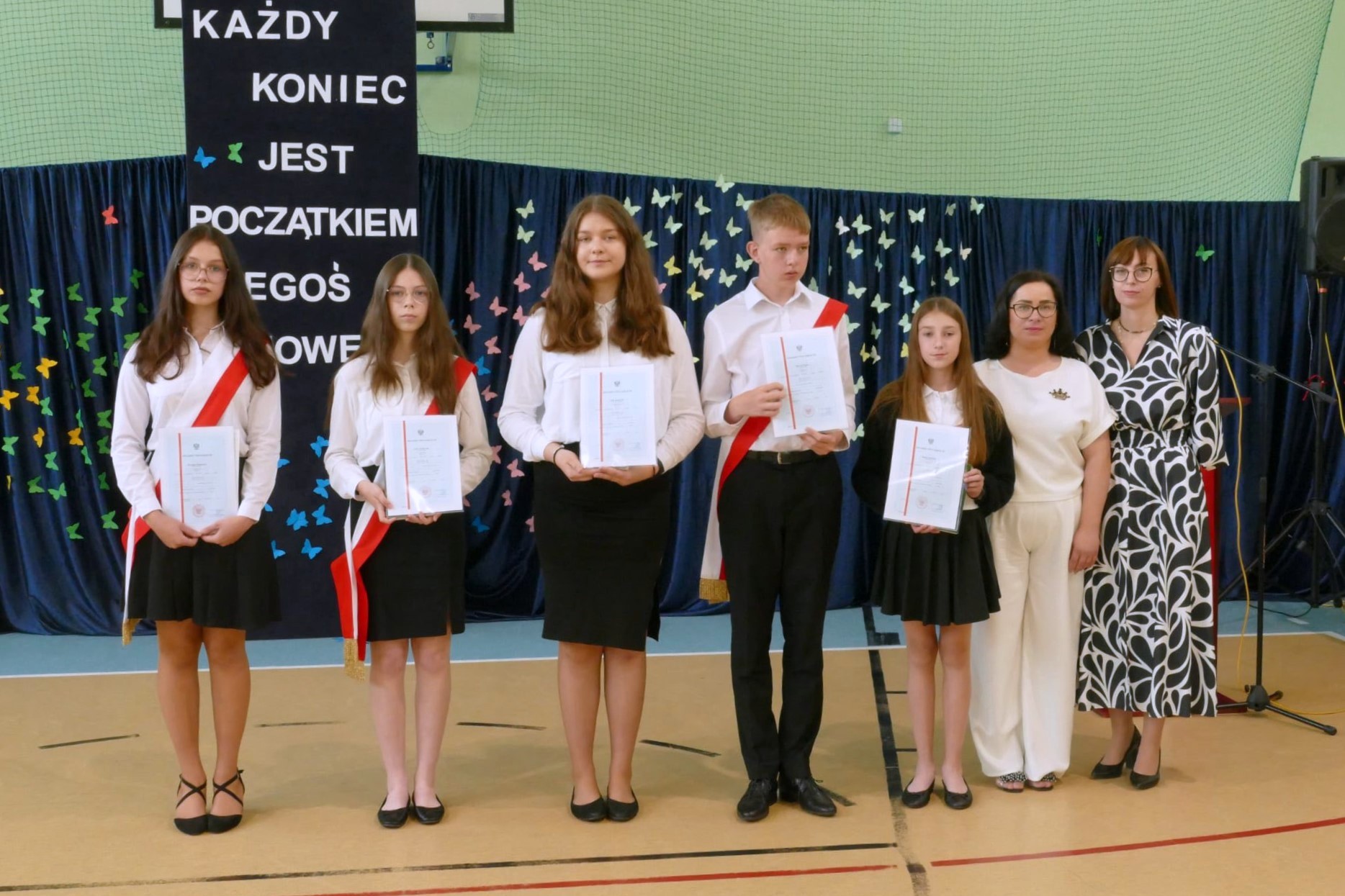 Słowa wdzięczności, statuetki dla najlepszych i program artystyczny. Społeczność Szkoły Podstawowej im. Ojca Świętego Jana Pawła II w Bogutach-Piankach zamknęła rok szkolny 2024/2025.