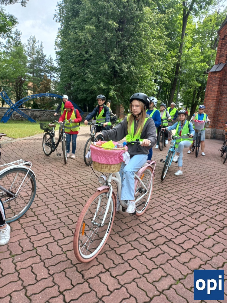 Grupa rowerzystów, wśród których znaleźli się parafianie w różnym wieku, wyrusza w trasę do Sanktuarium w Nowej Osuchowej.