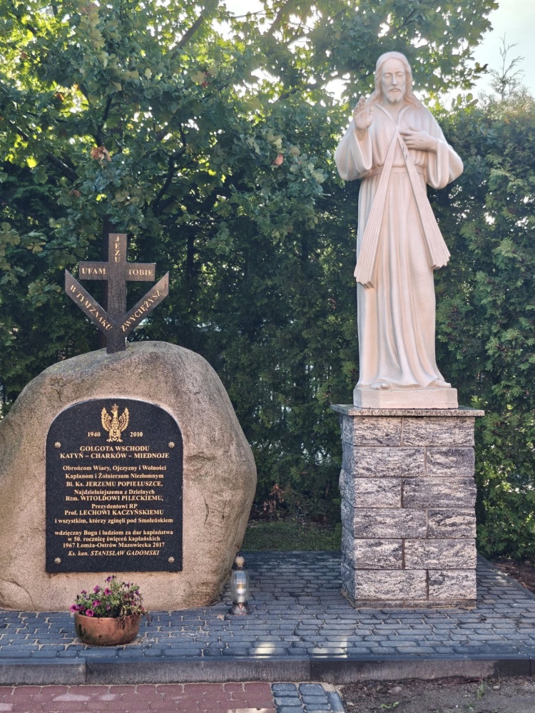 Figura Chrystusa Miłosiernego została przeniesiona. Znajduje się obok pamiątkowego kamienia, ufundowanego przez śp. ks. kanonika Stanisława Gadomskiego.