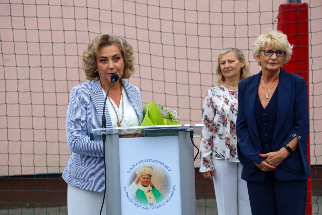 Jubileusz 40-lecia pracy dyrektorki, powitanie pierwszoklasistów i hołd dla bohaterów wojennych - tak wyglądało rozpoczęcie roku szkolnego w Szkole Podstawowej nr 2 im. Papieża Jana Pawła II w Ostrowi Mazowieckiej.