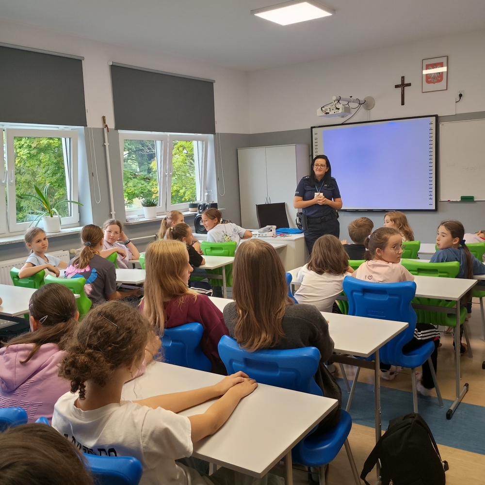 Policjanci kontynuują wizyty w szkołach w ramach akcji Bezpieczna droga do szkoły i Roadpol Safety Days 2025 (19.09.2025) - Zdjęcie 1/14