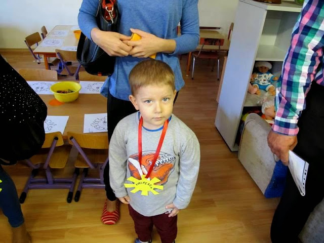 Dzieci wraz z Rodzicami zwiedziły pomieszczenia przedszkola - sale, szatnie, łazienki oraz plac zabaw. Następnie spotkały się ze swoimi Paniami. Były rozmowy, zabawy, śpiew, a nawet pierwsze prace plastyczne.