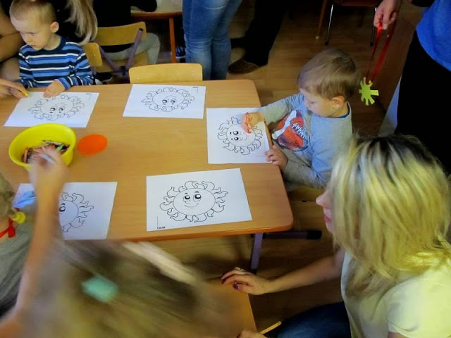Dzieci wraz z Rodzicami zwiedziły pomieszczenia przedszkola - sale, szatnie, łazienki oraz plac zabaw. Następnie spotkały się ze swoimi Paniami. Były rozmowy, zabawy, śpiew, a nawet pierwsze prace plastyczne.