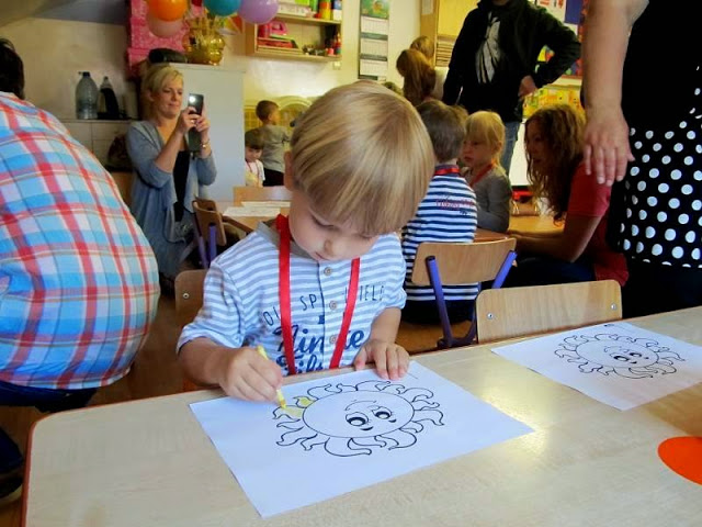 Dzieci wraz z Rodzicami zwiedziły pomieszczenia przedszkola - sale, szatnie, łazienki oraz plac zabaw. Następnie spotkały się ze swoimi Paniami. Były rozmowy, zabawy, śpiew, a nawet pierwsze prace plastyczne.