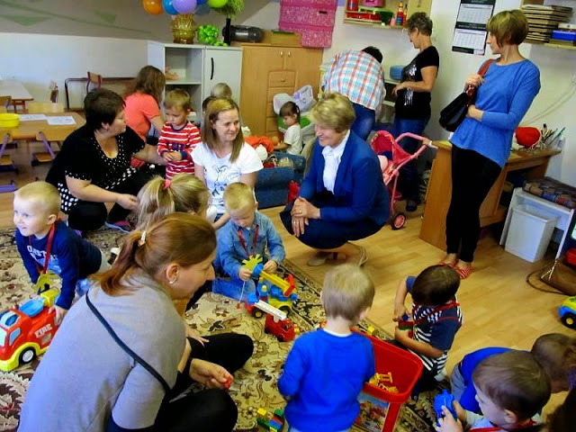 Dzieci wraz z Rodzicami zwiedziły pomieszczenia przedszkola - sale, szatnie, łazienki oraz plac zabaw. Następnie spotkały się ze swoimi Paniami. Były rozmowy, zabawy, śpiew, a nawet pierwsze prace plastyczne.
